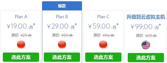 從BlueHost中國(guó)官網(wǎng)了解到:BlueHost推出了香港Wordpress專(zhuān)用主機(jī)、使用Linux系統(tǒng),BlueHost香港Wordpress主機(jī)共有四款方案,分別為:Plan A、Plan B、Plan C、云虛擬主機(jī),如下圖所示: