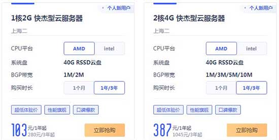 除了騰訊云、UCloud優(yōu)刻得之外,還有眾多的眾多商家推出有1核2G配置的云服務器。比如:阿里云、西部數(shù)據(jù)、華為云,都是大型云計算服務商,在價格上相差不大都是在100元左右!
