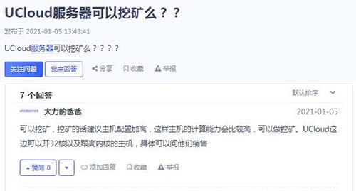 在Ucloud優(yōu)刻得用戶社區(qū)有網(wǎng)友咨詢過這個問題,Ucloud優(yōu)刻得用戶回答是:可以挖礦,需要購買高配置的企業(yè)云服務(wù)器,比如:32核以上的云主機(jī)!如下圖所示: