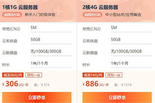 恒創(chuàng)科技還推出了美國云服務(wù)器,價格上與香港云服務(wù)器差不多。1核1G2M美國云服務(wù)器只需要306元/年、2核4G2M美國云服務(wù)器只需要886元,如下圖所示: