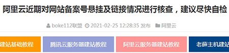 Boke112聯(lián)盟是一個(gè)知名的站長(zhǎng)科技類博客,小編沒有與Boke112聯(lián)盟站長(zhǎng)有交流!不過,有時(shí)間還是會(huì)經(jīng)常去Boke112聯(lián)盟博客看看。最近,在訪問Boke112聯(lián)盟時(shí)看到站長(zhǎng)發(fā)布信息說:收到阿里云備案信息核查通知。如下圖所示: