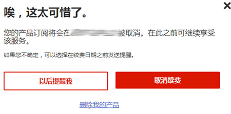 在這里我們看到”刪除我的產(chǎn)品”,后面有一系列的提示是否刪除,也是比較謹(jǐn)慎的。我們勾選且發(fā)送驗(yàn)證到我們郵箱,畢竟這個(gè)也不是隨便誰都可以刪除的,需要賬戶授權(quán)的。
