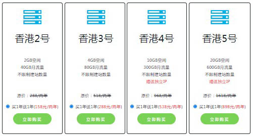 如上圖所示,老薛優(yōu)質(zhì)美國(guó)空間的太陽(yáng)1號(hào)-5號(hào)數(shù)據(jù)庫(kù)數(shù)量和綁定域名都是無(wú)限,也就是說(shuō)都可以建立無(wú)限個(gè)博客網(wǎng)站。而其他空間或地域的虛擬主機(jī)只有1號(hào)主機(jī)的數(shù)據(jù)庫(kù)數(shù)量和綁定域名都是1個(gè),其他同樣是無(wú)限個(gè)。如下圖香港空間的主機(jī):