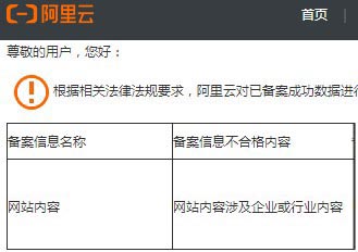 阿里云備案核查通知如何整改通過?網(wǎng)站內(nèi)容涉及企業(yè)或行業(yè)內(nèi)容