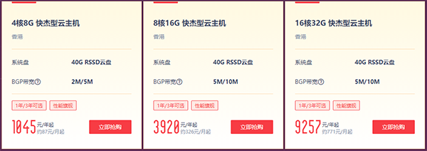 對于,最貴的9257元云主機(jī)我們一般是用不到的!最合適的個人站長使用的云主機(jī)有兩款:一是香港2核4G2M/5M快杰型云主機(jī)534元年/起,這個配置對于一般的個人網(wǎng)站完全夠用;二是香港4核8G2M/5M快杰型云主機(jī)1045元年/起,如果需要網(wǎng)站速度體驗(yàn)更好,或網(wǎng)站流量達(dá)到一萬IP以上可以使用這款配置(個人觀點(diǎn))。