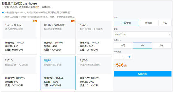在騰訊云全球云服務(wù)器活動(dòng)頁(yè)面中的“新老用戶(hù)同享”,即可看到有6種不同規(guī)格的免備案輕量應(yīng)用服務(wù)器,分別為1核1G30M(Linux和Windows)、1核2G30M、2核2G30M、2核4G30M、2核8G30M,都有中國(guó)香港的地域可選,帶寬和時(shí)長(zhǎng)也可選,所以中國(guó)香港輕量應(yīng)用服務(wù)器的價(jià)格是不固定的,跟你所選擇的配置有關(guān)。比如下圖所示的1核1G30M Linux輕量應(yīng)用服務(wù)器,選擇中國(guó)香港,購(gòu)買(mǎi)6個(gè)月的價(jià)格就是144元。